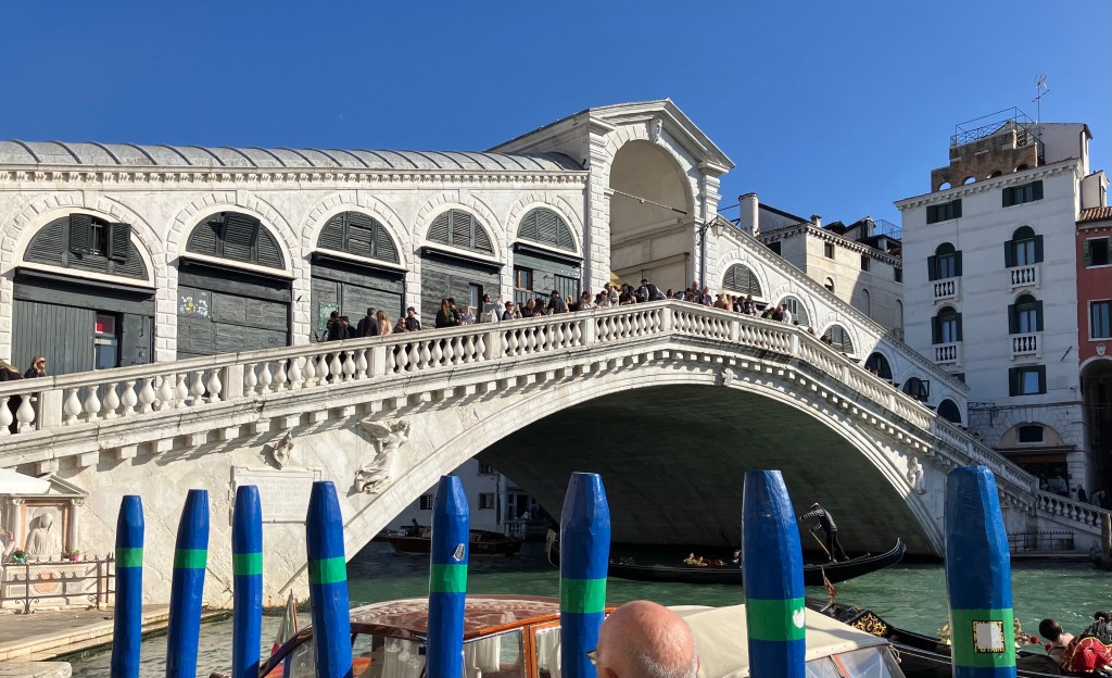 After a 45-minute boat ride from the ship to the dock by the Piazza San Marco, we enjoyed a few hours wandering around Venice on a beautiful sunny pleasant morning. We had about an hour and a half by ourselves before we had to be back at the Piazza to meet our tour guide for an hour’s tour through the piazza and into the back streets and over the canals back to the boat.