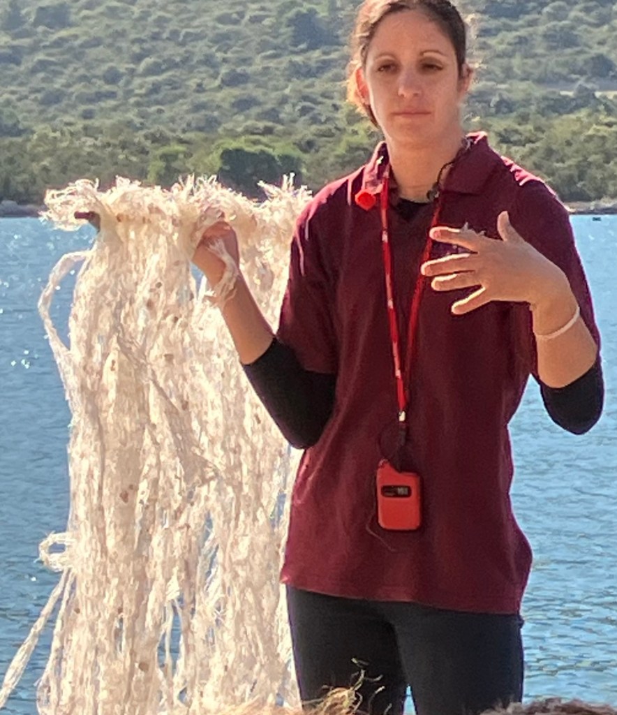 Our bus load of fellow cruisers boarded a small boat set up with tables, and we motored a short way to the “farm” where the owner had his oysters and mussels growing. His wife served up their homemade Grappa, a strong liqueur from grapes flavored with herbs, served in shot glasses.