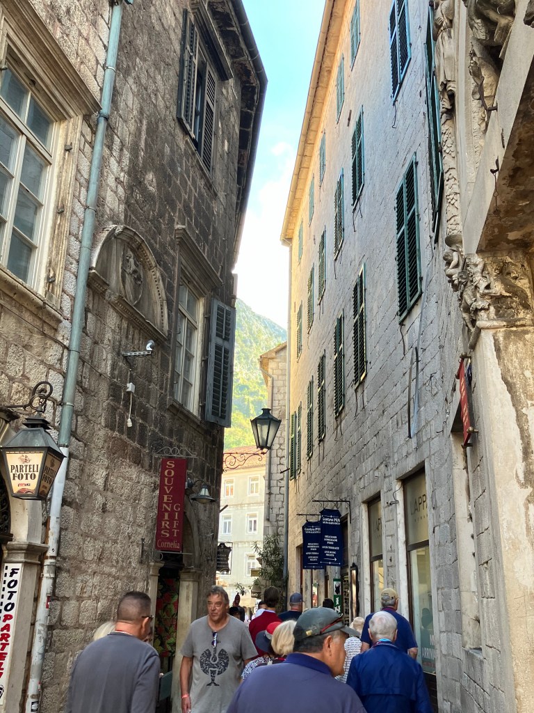 After overnight cruising from Dubrovnik, Croatia, we arrived at Kotor, Montenegro at 7:00 am. We enjoyed a lazy morning since our scheduled free tour of the city wasn’t until the last one of the day at 2:15 pm. The excursions every day are very nice, but it is nice to not have to jump out of bed, grab breakfast and meet the group off the boat! I never thought days at sea would be fun, but as I write this sitting in Athens Harbor, never leaving the ship today, I can see the benefits of a day off now and then!